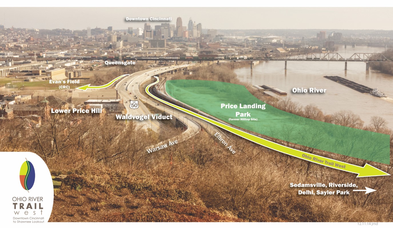 Co-Chair Dave Zelman said, “Price Landing is also a key piece of our work toward realization of the Ohio River Trail West. It is at the east end of the first phase of the trail, with planning well underway to link Lower Price Hill to the Gilday Recreation Complex in Riverside. This park will serve as a gateway to western Hamilton County, and be a positive addition to our region.”